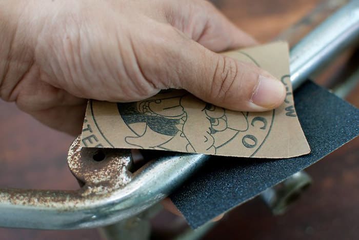 Если рама металлическая и на ней уже есть следы коррозии, то их нужно тщательно обработать абразивом.