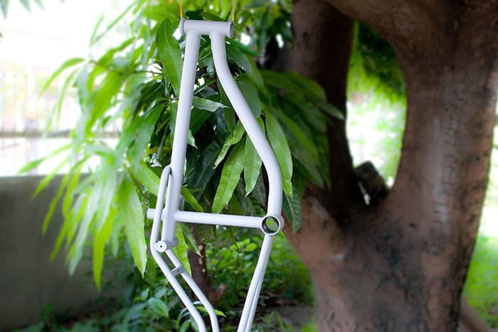 Если возникли трудности с подвешиванием рамы, ее можно установить на стол, но в таком случае придется сконструировать конструкцию, на которой велосипедная рама будет держаться.